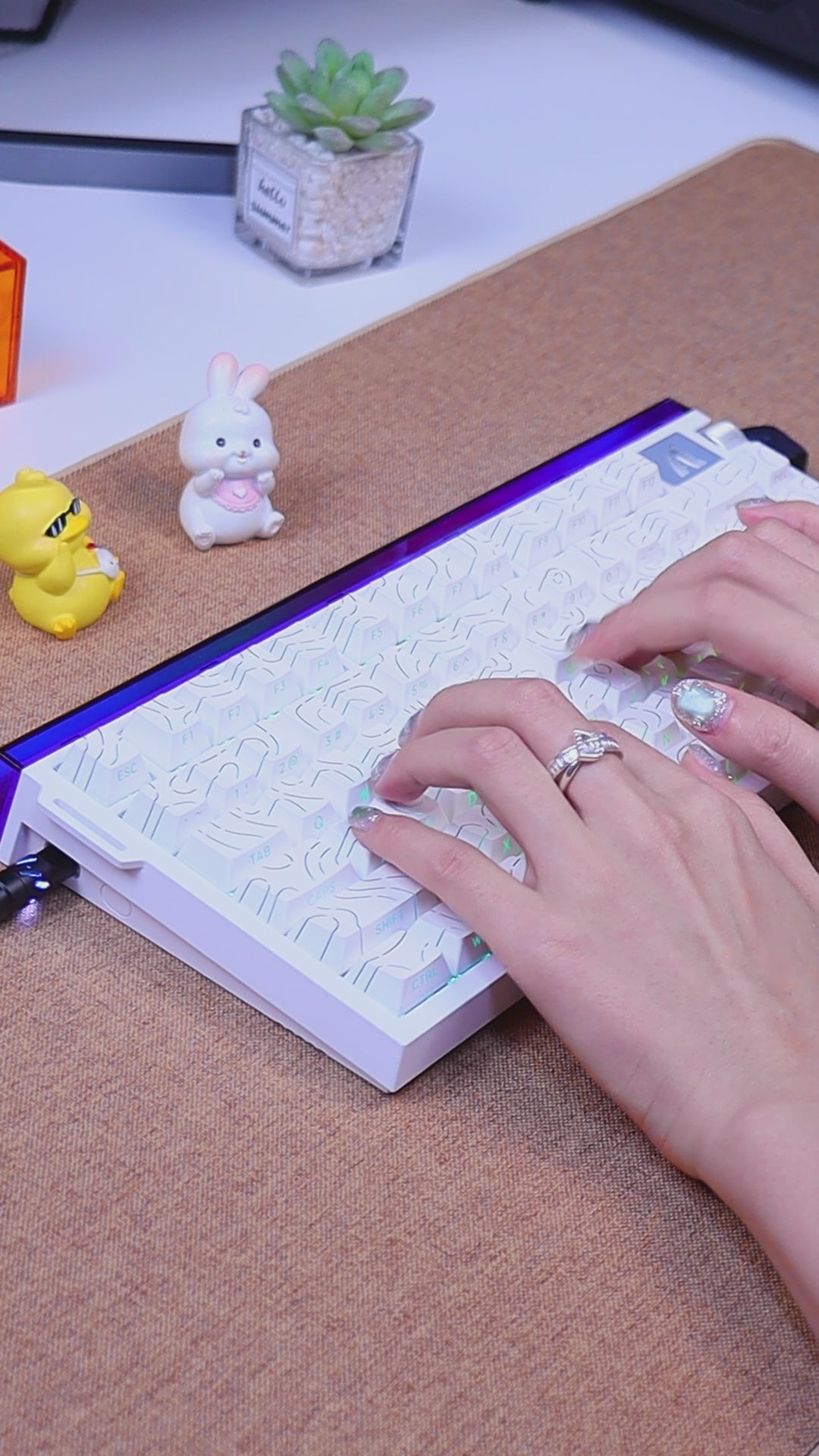 - Questa tastiera con layout al 75% ripristina la riga funzione e i tasti di navigazione in dimensioni compatte, bilanciando portabilità e prestazioni. I piedini regolabili a due stadi offrono tre angolazioni ergonomiche per sessioni lunghe e confortevoli.